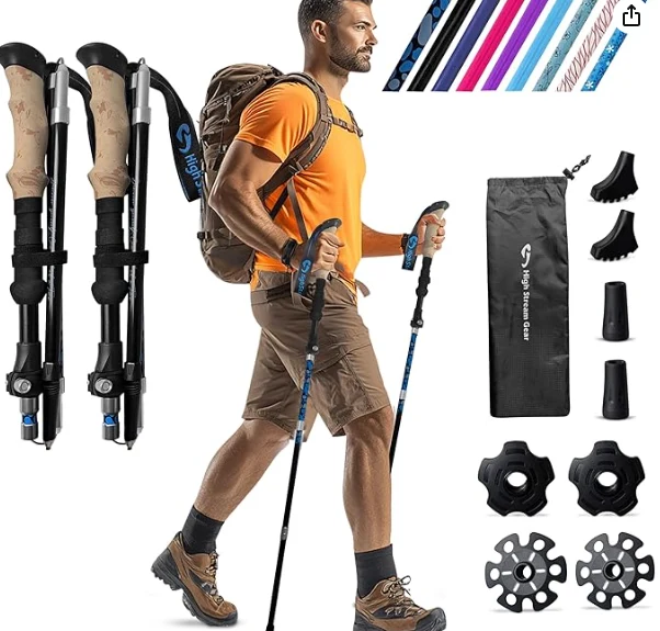 फ्लेप्चर नरबाजिकल हाईकिंग पोल .उल्ड हाइकिंग पोलहरू ब्याकप्याकिंग, व्यायाम र यात्रा गर्ने पोलहरू 2 एल्युमिनियम नरकको सेट