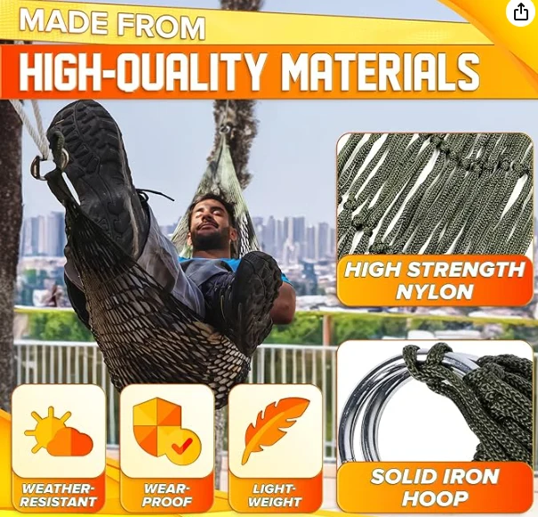 हाईकिंग ह्या hang ्ग ह्यान्डक, यी नायॉन स्ट्रि still हम्मोकको उच्च लोड-असर क्षमता छ। यी नायलन रोप्स ह्यामॉक इन्स्टोर र उच्च स्थायित्वका लागि पूर्ण रूपमा पूर्ण छन् र लगाउन प्रतिरोधी