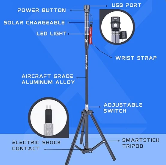 रणनीतिक पैदल यात्रा स्टिक सजिलैसँग सुविधाजनक USB पोर्ट प्रयोग गरेर तपाईंको स्मार्टफोन वा कुनै पनि अन्य USB उपकरण खडा गर्न सक्दछ। जब तपाईंसँग बाँच्न सक्ने पावर बैंक बोक्नको लागि कहिले पनि चिन्ता नगर्नुहोस्।