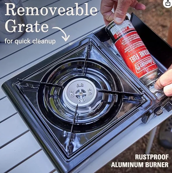 मिनी पोर्टेबल फ्लेर क्याम्पर क्याम्पिंग ओभर्स्लेन-लेपित ग्रेट द्रुत सफाको लागि हटाउने; रस्ट-प्रमाण एल्युमिनियम बर्नर ,, 6500 को कुल BTus खाना पकाउने शक्ति