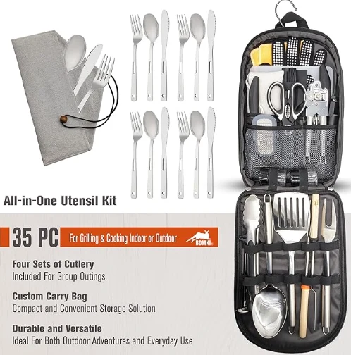 बाहिरी क्याम्पिंग कुकवेयर भण्डारणको झोला यस 35 35 पीसी क्याम्पिंग कुकिल पकाइएको भाँडामा सेट गर्नुहोस् तपाईंको बाहिरी पकाउने आवश्यकताहरूको लागि पूर्ण समाधान हो। यसमा एक शिविर किचन सेट र शिविर पकाउने सेट गरिएको शिविर पकाउँदै, सबै सफा रूपमा एक अनुकूलित एक अनुकूल रूपमा अतिरिक्त कम्पार्टमेन्टहरू र दुई पछाडि जेबको साथ। सेट तपाईंको सबै क्याम्पिंग कुकिंगलाई आवश्यक गर्नको लागि डिजाइन गरिएको हो, यसलाई तपाईंको शिविर गियरमा एउटा अपरिहार्य थप बनाउँदैछ