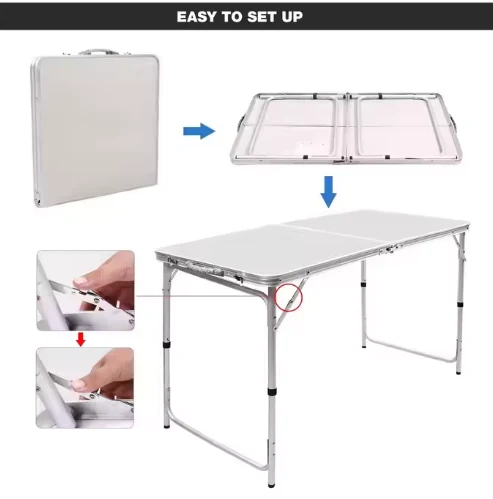 पोर्टेबल फोल्ड एल्युमिटम टेबल ,सँग महामान्य प्रयोगहरू छन्, पिकनिक तालिका, समुद्री तट, पर्यटन घटनाहरू, आरभी बाहिरका र माछा मार्ने।