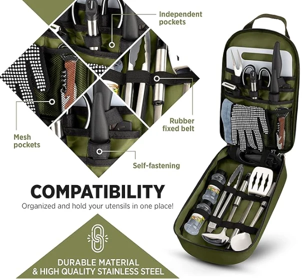 पोर्टेबल आउटडोर क्याम्पिंग उपकरण झोला। बहु कम्पार्टमेन्टहरू छन्, त्यसैले फ्ल्याटवेयर कडा रहन्छ र यातायात समयमा क्लोटर हुँदैन। पतनको मामलामा, बाक्लो बुनेको कपासको बाहिरी खोलसाइंगले तपाईंको कढारीलाई खरोंच वा परिष्कृतबाट बचाउनेछ फोल्डेड, पाउच पूरै यात्रा सामान, ट्रवत, ट्रंक, ट्रंक वा यो हात समात्न सकिन्छ (ह्यान्डलमा निर्मित)। डिशवाशर सुरक्षित र यो सजिलै सफा हुन्छ र धूम्रपान उचित छ। एक पातलो डिजाइन संग ईन्जिनियर गरिएको, यो सजिलैसँग मानक भण्डारण रिक्त स्थानमा स्टोर गर्दछ