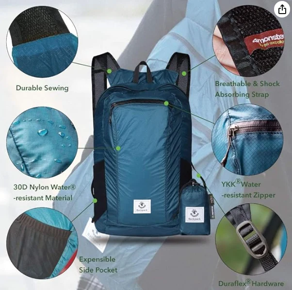 वाटरप्रूफ्फ्रोफ लाइटवेट उब्ज गर्ने ब्याकपप्याक, फोल्डल ब्याकप्याकले आउटडोर यात्रा, शिविर, पैदल यात्रा, दिन यात्रा र शपिंगको लागि पर्याप्त ठाउँ प्रदान गर्दछ। एक मुख्य जिपर जेब, एक फ्रन्ट zipper जेब र दुई जाल साइड जेबहरू T0 दिन कुनै हेस्ले रिटर्न / नि: शुल्क विनिमय, 12 महिना वारन्ट।